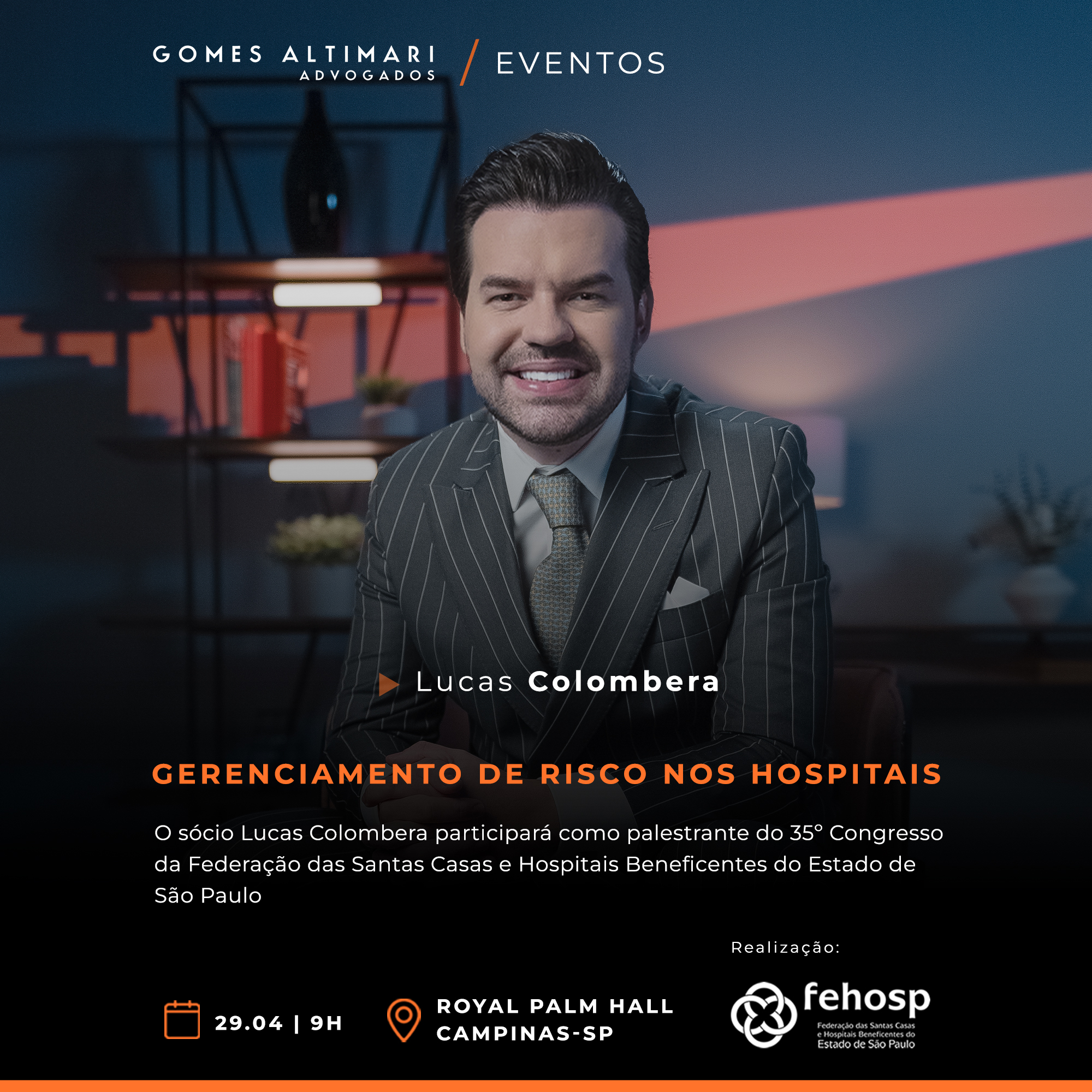 O sócio Lucas Colombera foi convidado para participar como palestrante do 35º Congresso da Federação das Santas Casas e Hospitais Beneficentes do Estado de São Paulo, um dos mais relevantes encontros do setor de saúde beneficente do estado.